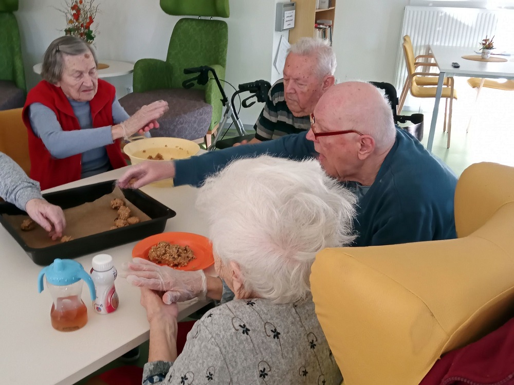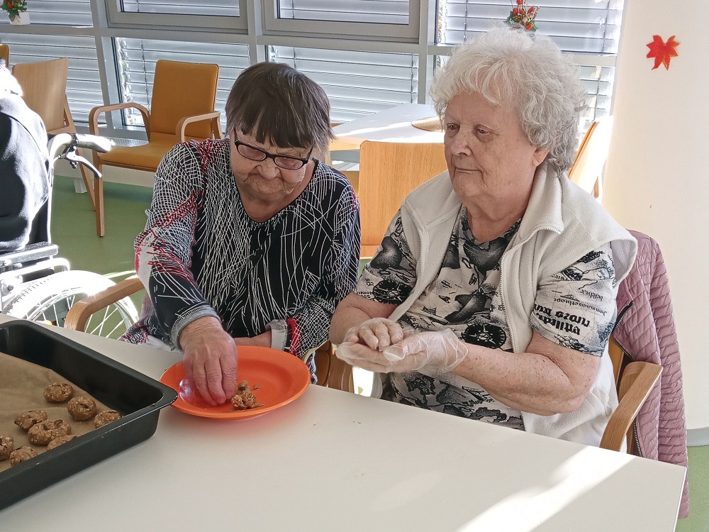 Uživatelé z třetího domova se sešli v klubovně a společně si ukuchtili z jablek a ovesných vloček výborné sušenky.