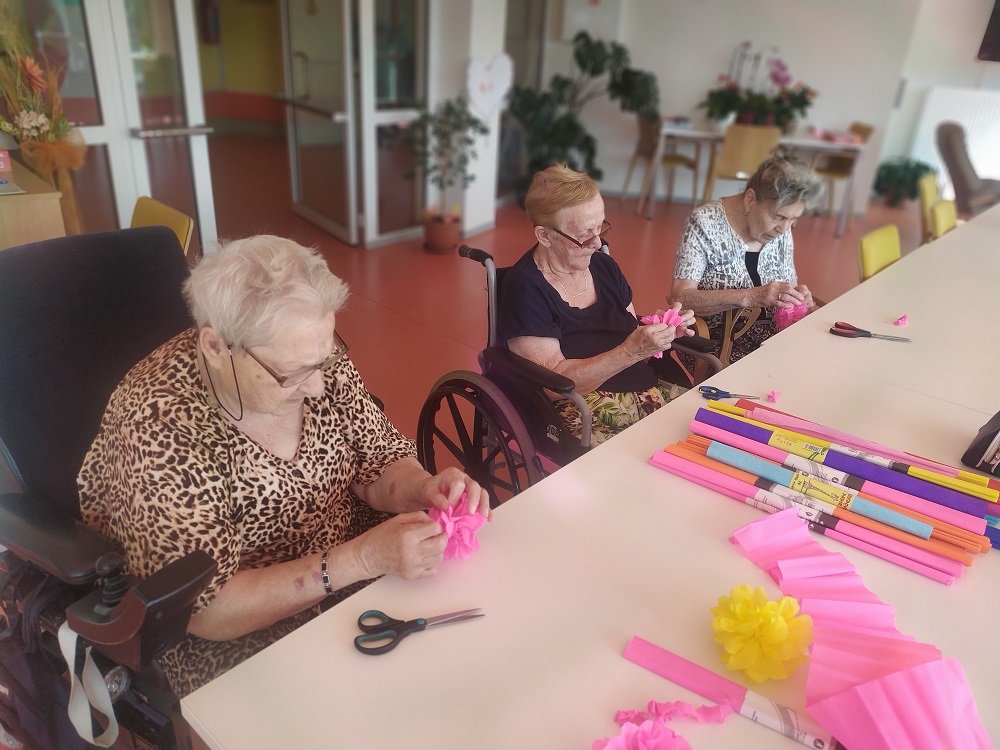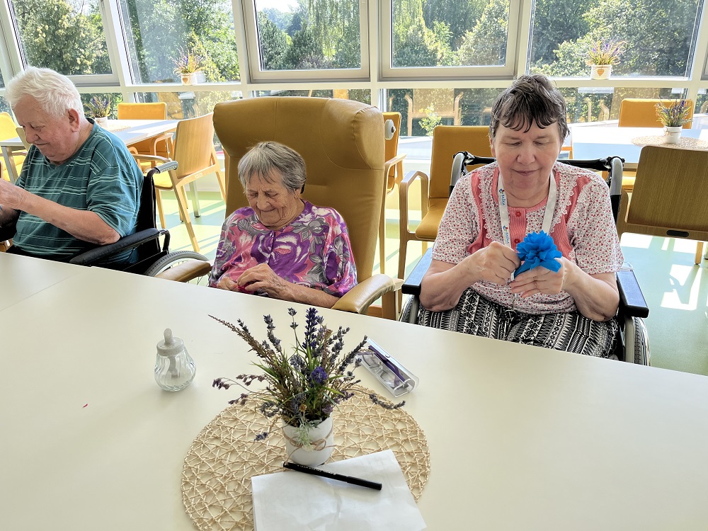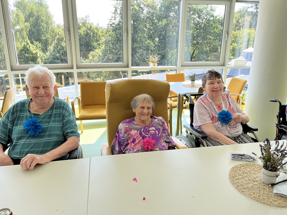 V úterý 16.8. jsme si s uživateli IV. Domova udělali kreativní dopoledne a tvořili jsme kytičky z krepového papíru. Z nich jsme následně udělali buď závěsnou ozdobu pokoje, nebo náhrdelník na maškarní slavnost.