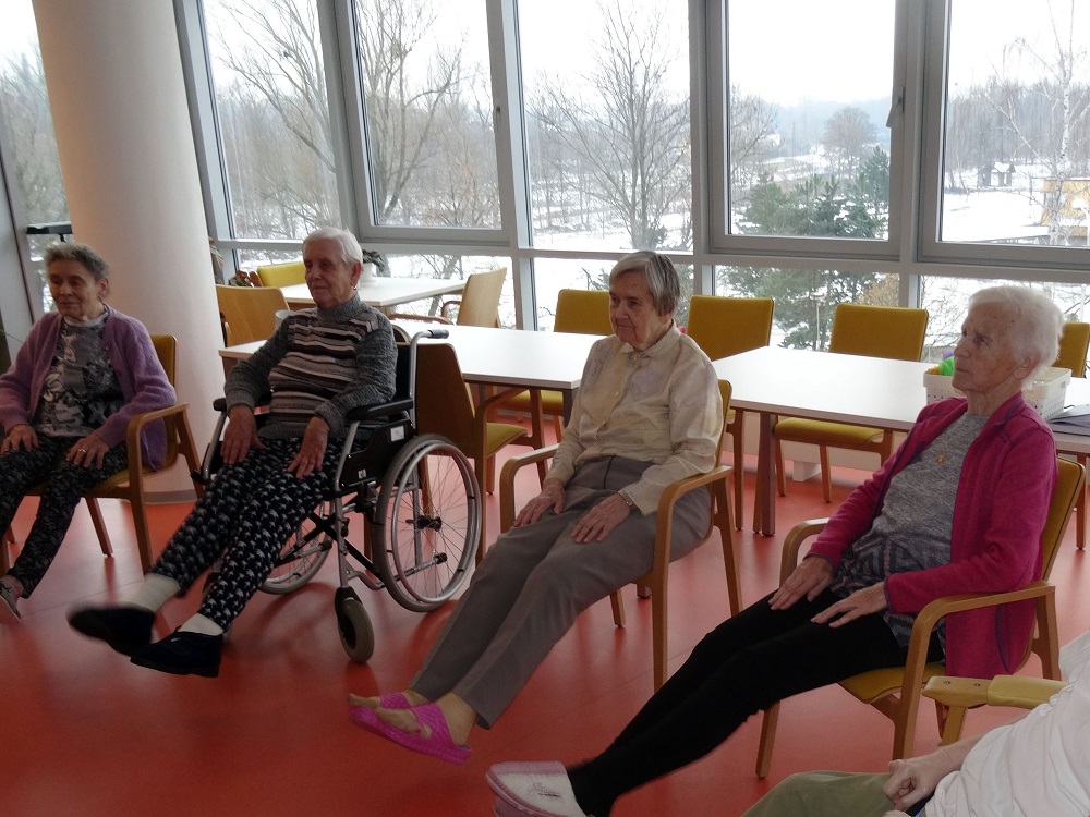 Když svalový aparát ochabuje, bolí záda i klouby, nejlepším lékem je na to pohyb. To naši uživatelé dobře vědí, proto se rádi setkávají na skupinovém cvičení či tančení v sedě.