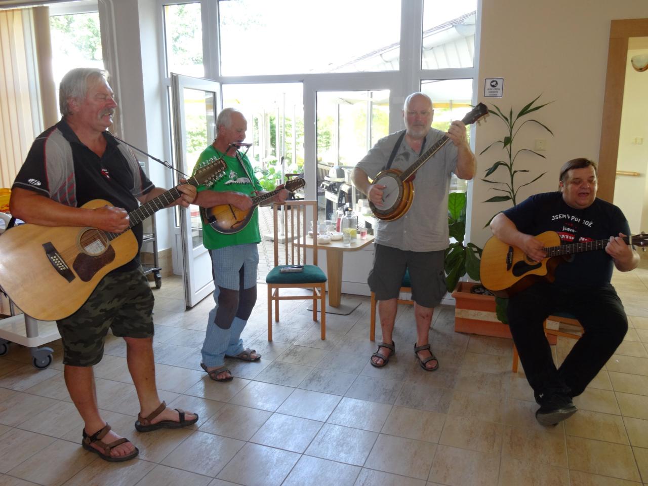 V úterý 18. 6. 2024 v odpoledních hodinách se uskutečnilo ve vstupní hale a atriu DS první letošní grilování špekáčků, kterým jsme krásně přivítali léto. Toto posezení nám zpříjemnila country kapela „Kajhrajem“. Zahrála známé písně k poslechu i společnému zpěvu.