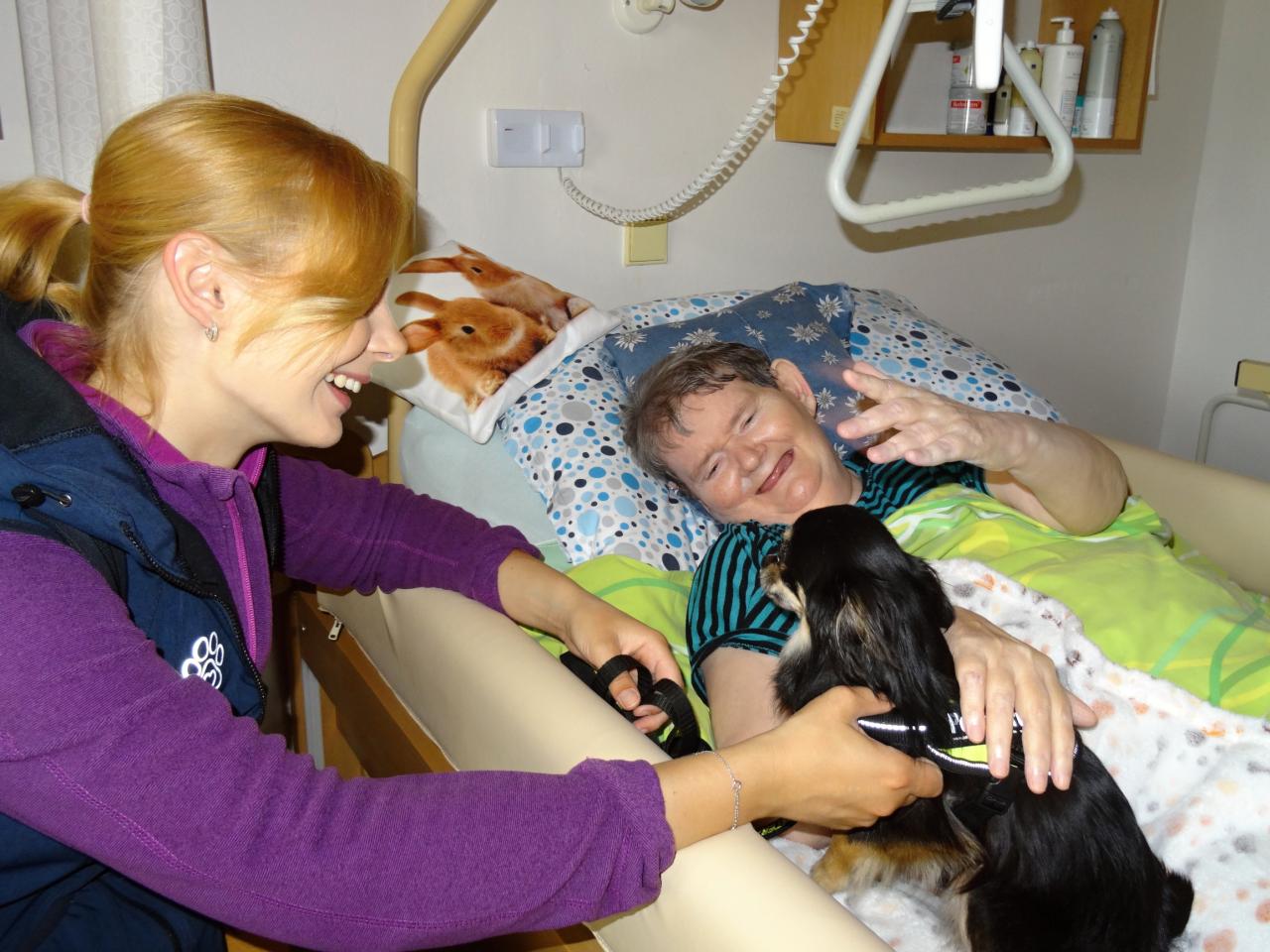 V pondělí 8. 7. 2024 se opět někteří uživatelé na Domově III těšili z návštěvy canisterapeutky. Čivava Kryšpín je svou přítomností hodně potěšil a rozveselil.