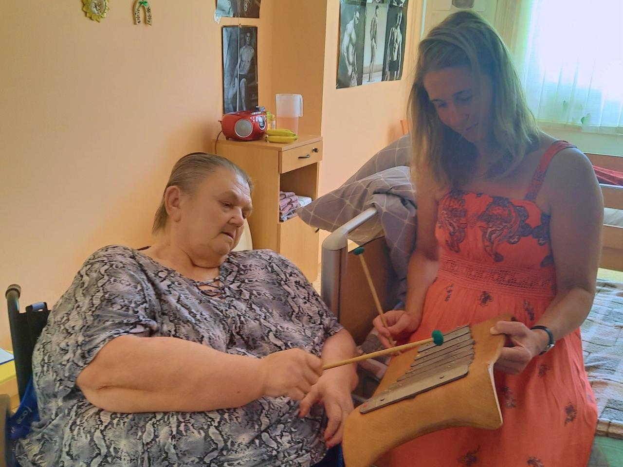 Dne 14. 8. 2024 probíhala na pokojích jednotlivých Domovů individuální muzikoterapie s p. Vlaďkou Gavlasovou. Uživatelům představila a zahrála na méně známé hudební nástroje, mohli si hru na ně také sami vyzkoušet.