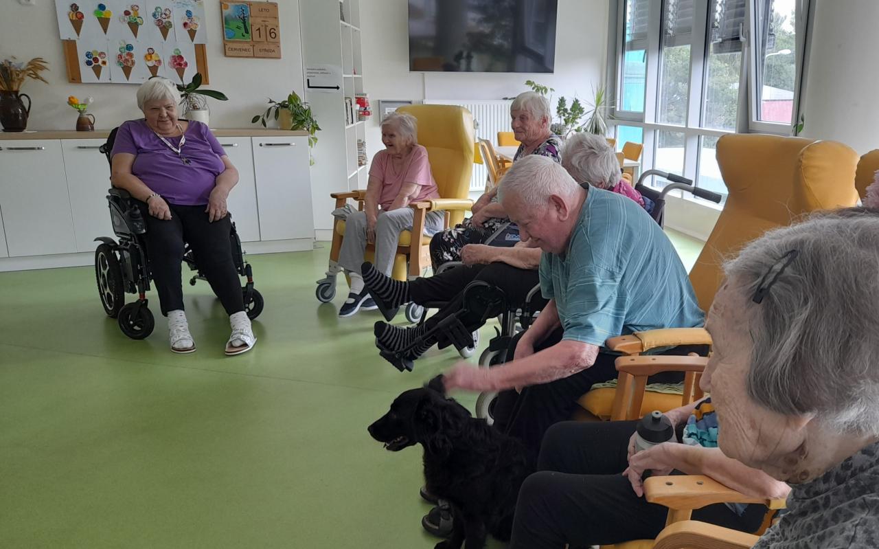 Velký zájem vzbudily také terapeutické aktivity za přítomnosti zvířat. Proběhla individuální felinoterapie, která nabídla klidné chvíle v kontaktu s kočkou, jejíž přítomnost má pozitivní vliv na psychickou pohodu a emoce. Nechyběla ani canisterapie – skupinová forma přinesla sdílenou radost a společné zážitky, zatímco individuální návštěvy fenky Heidy přímo na pokojích umožnily osobní a klidný kontakt i uživatelům, kteří se nemohli zúčastnit společných akcí.