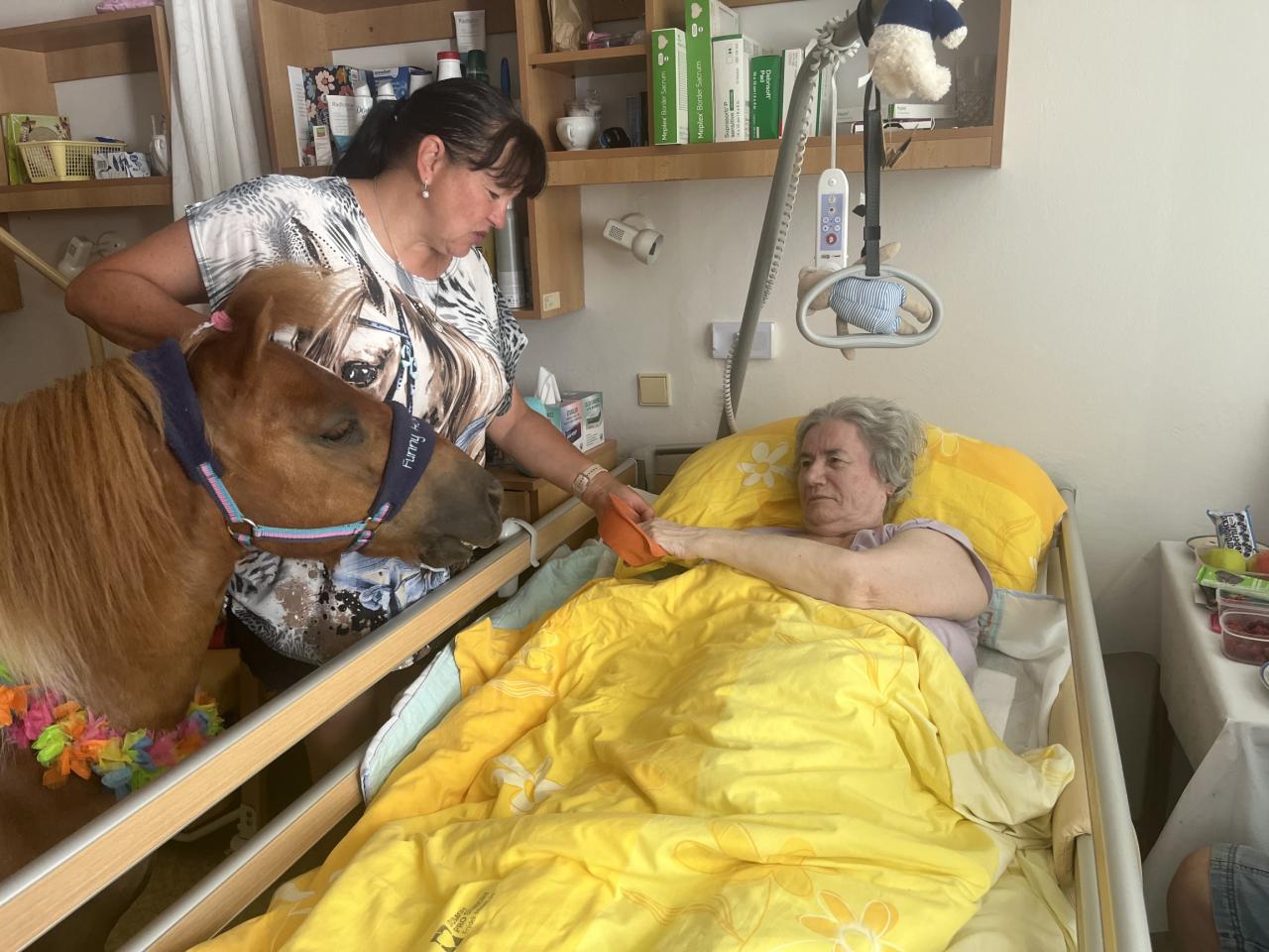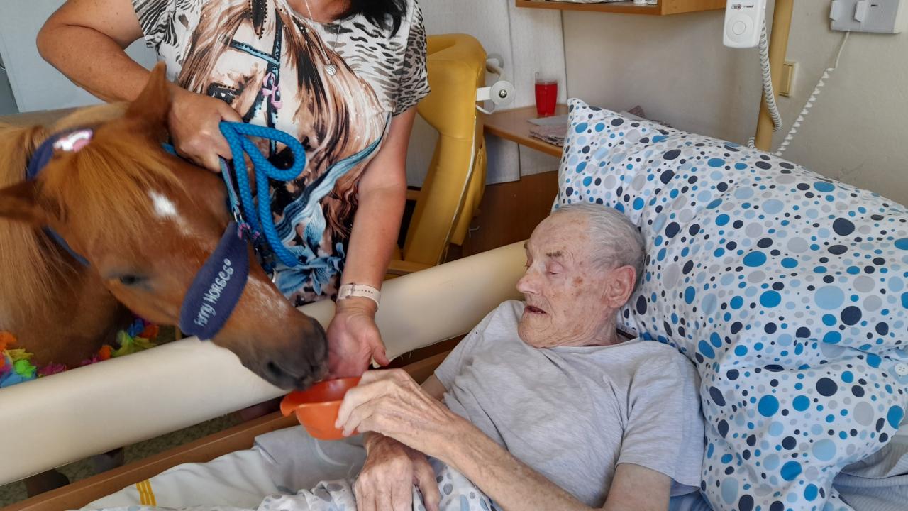 Individuální ponyterapie v domově pro seniory přináší obyvatelům radost, klid a emocionální podporu prostřednictvím kontaktu s malým, přátelským poníkem Ondráškem.