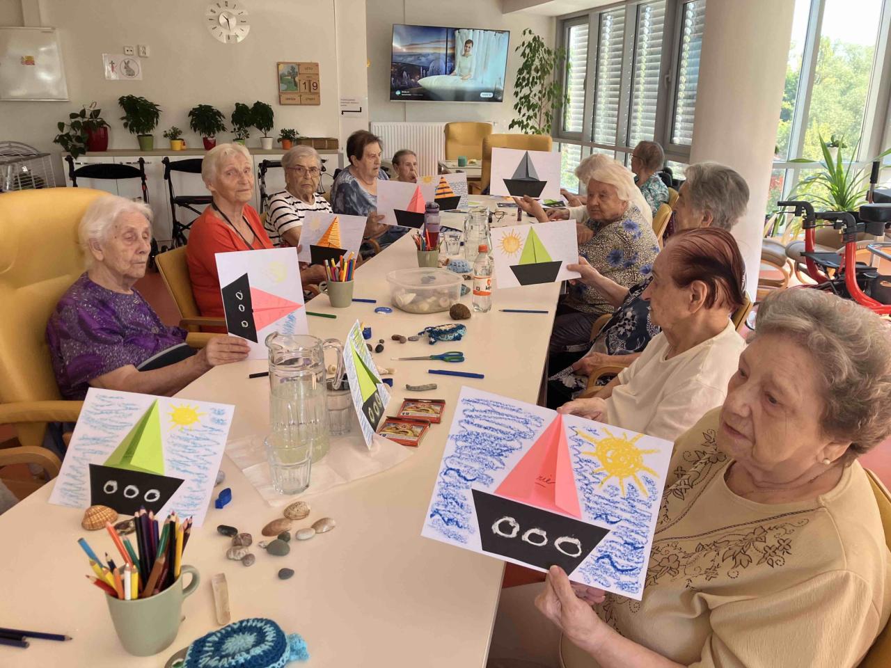 V úterý 19. 8. 2025 prožili uživatelé domova nezapomenutelné chvíle při společném výtvarném tvoření, které napomohlo jak ke zvýšení jejich sebedůvěry, sociální interakce, tak i ke stimulaci mozkové činnosti a smysluplného vyjádření.