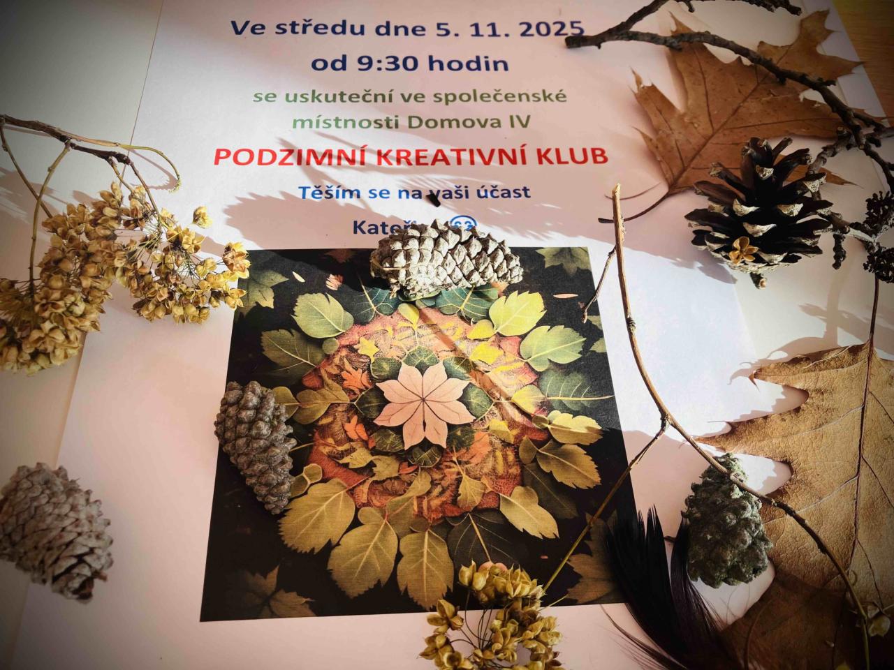 Ve středu 5. 11. 2025 prozářily společenskou místnost Domova IV podzimní mandaly a drobné kompozice z přírodnin, které vytvořily naše uživatelky v rámci kreativního klubu. Krása všech výrobků dokládá fakt, že i v pokročilém věku může být lidská fantazie bezbřehá.