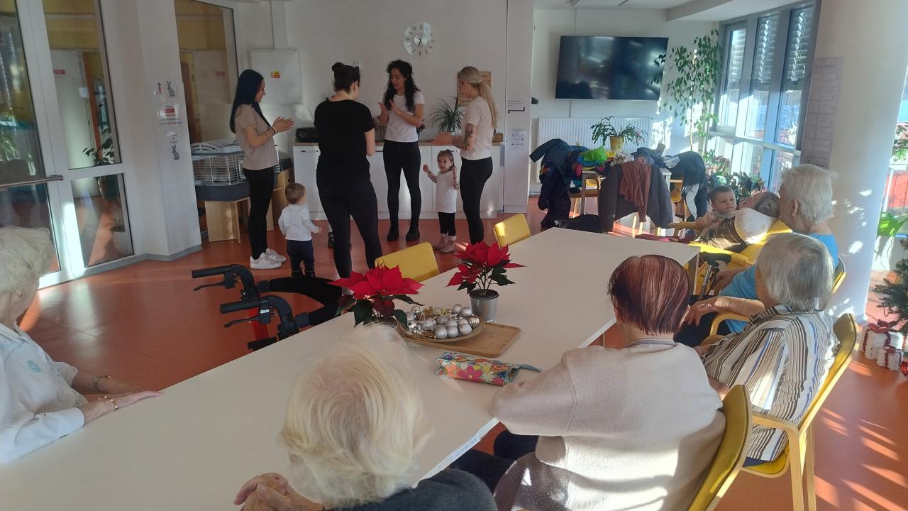 Dne 10. 12. 2025 do domova zavítala „mrňata“ z dětské skupiny Elánek, nejmladšímu byly teprve dva roky. S radostí předvedly, co si s tetami nacvičily, a potom uživatelům rozdaly vlastnoručně vyrobená vánoční přání. Toto setkání vykouzlilo uživatelům úsměv na tvářích.