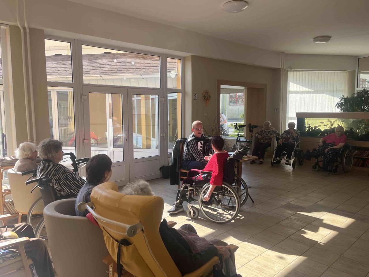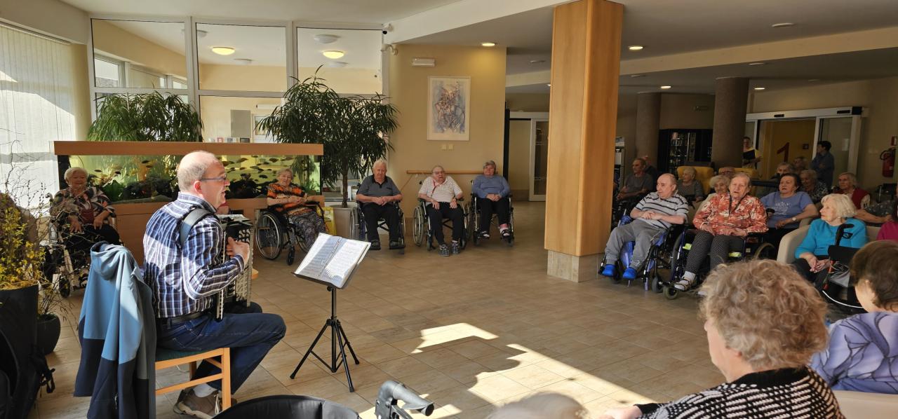 Dne 20. 3. 2026 se v našem domově uskutečnilo milé hudební vystoupení. Na harmoniku nám přišel zahrát pan Pavlíček, který svým vystoupením vykouzlil úsměvy na tvářích všech přítomných. Uživatelé si mohli zazpívat známé lidové písně a prožít příjemné chvíle plné hudby.