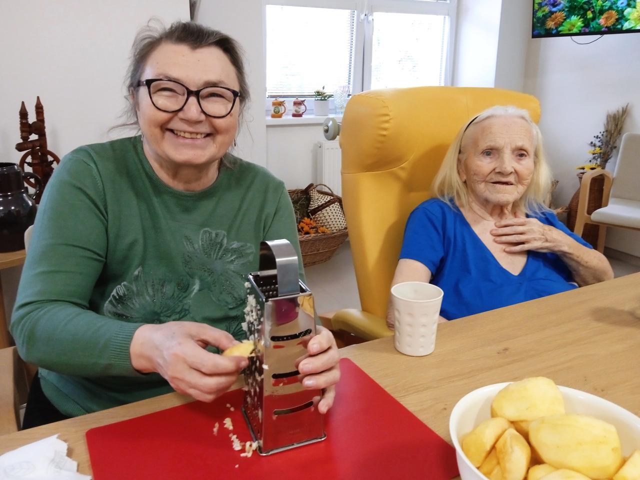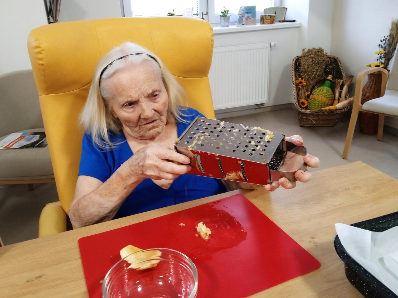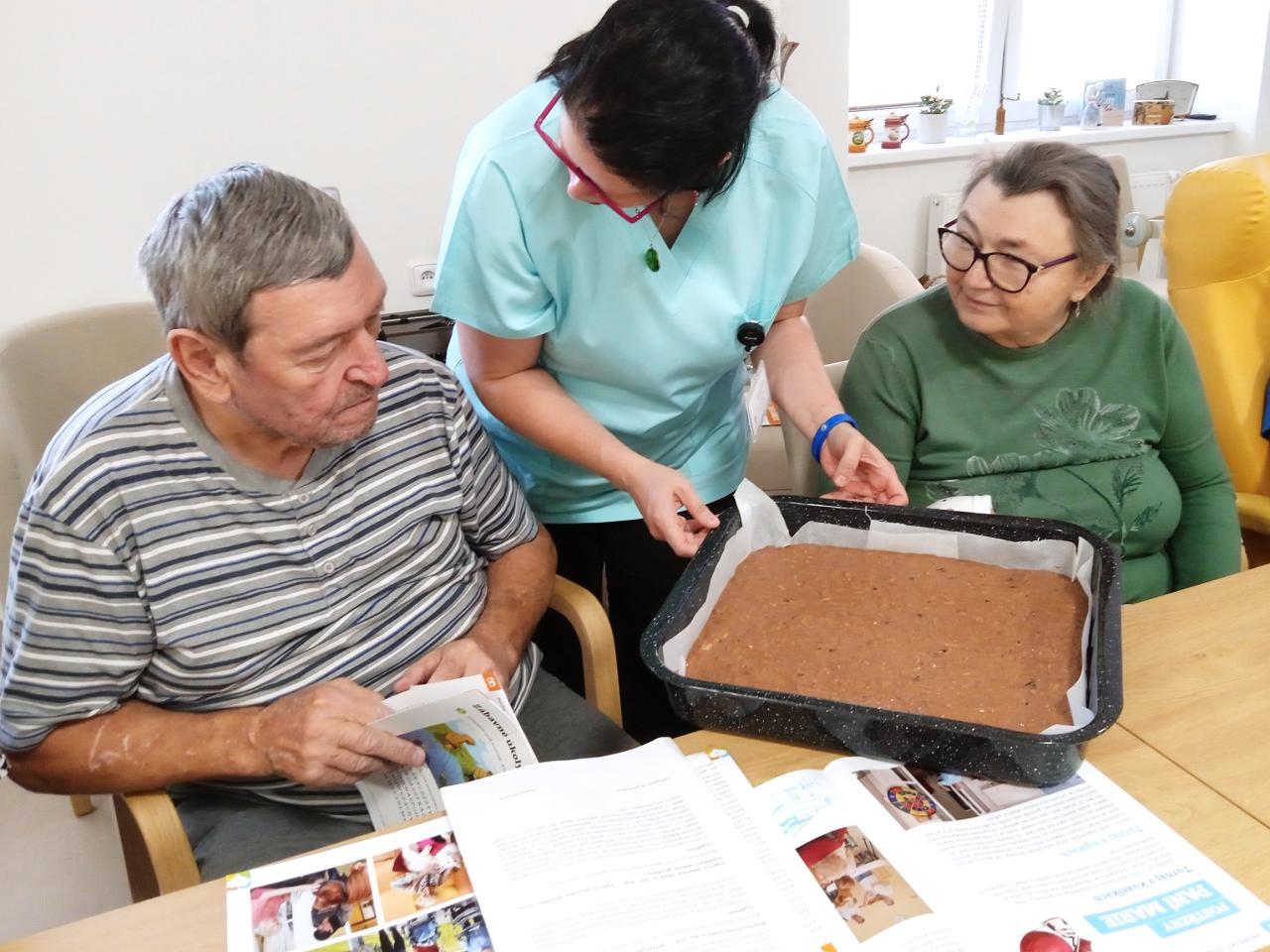 Uživatelé se s chutí zapojili do přípravy – loupali a krájeli jablka, míchali těsto a pomáhali s aranžováním koláče na plech. Během činnosti probíhalo spontánní vzpomínání na domácí pečení, tradiční recepty a zvyky z mládí. Atmosféra byla velmi příjemná a uvolněná.