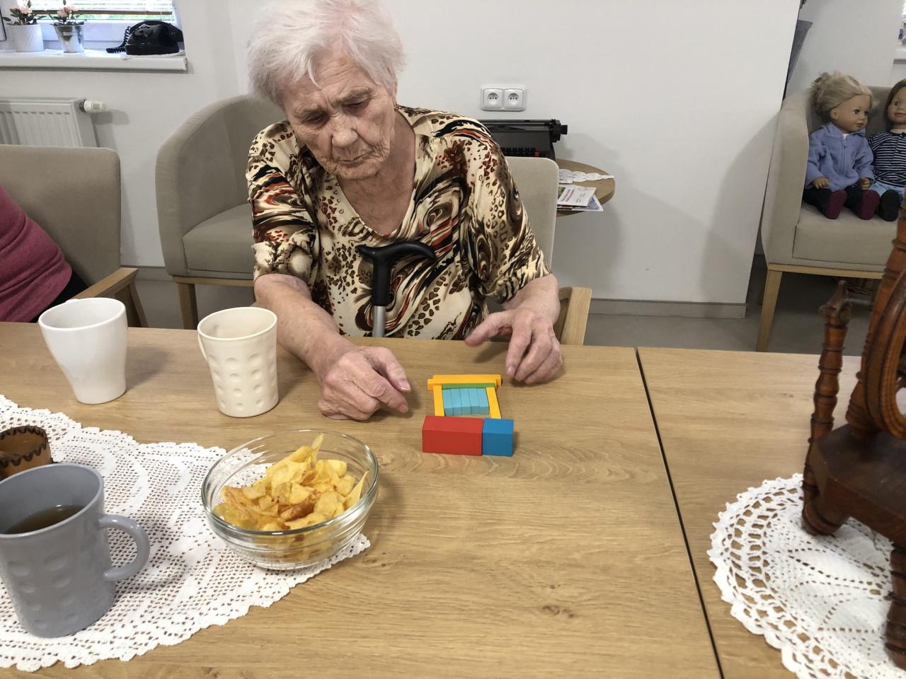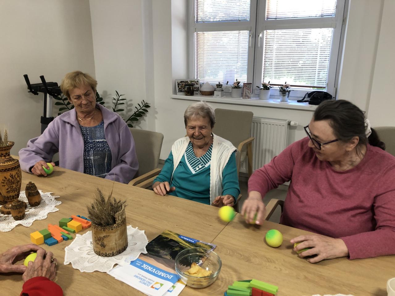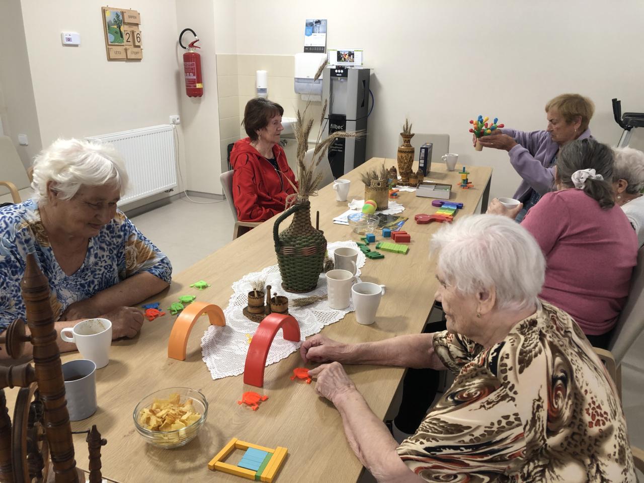 Nechyběly oblíbené činnosti zaměřené na procvičení jemné motoriky a koordinace pohybu. Uživatelé se zabavili stavěním věží z kostek, nechyběly ani aktivity s míčky nebo velmi oblíbené skákající žabky, které vždy vyvolají úsměv a nadšení. Taková hravá dopoledne nejen že podporují fyzickou aktivitu a trénují koordinaci, ale také posilují dobrou náladu a přátelské vztahy mezi klienty.
