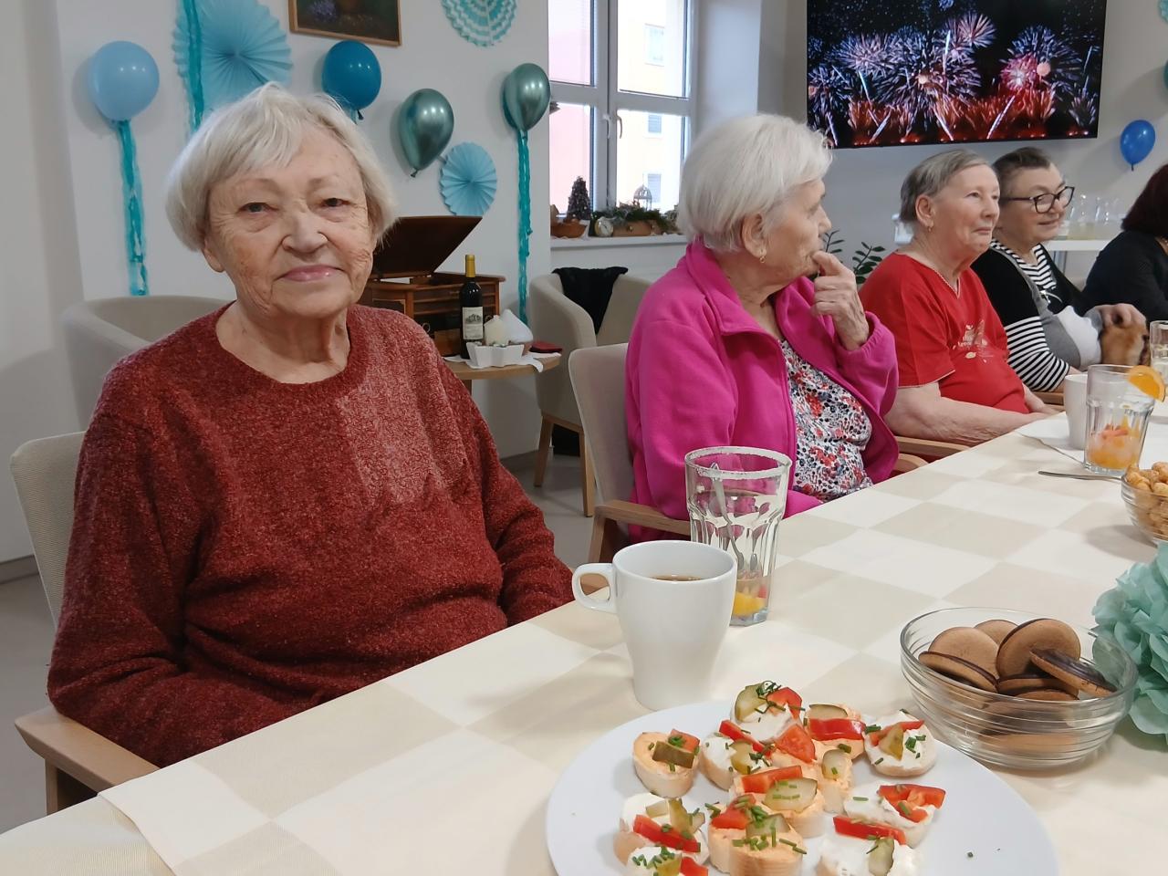 Setkání doprovázela hudba – retro písně z gramofonu – která navodila slavnostní náladu a vybízela k úsměvům i vzpomínkám. Připravené občerstvení přítomné uživatele velmi potěšilo, neb si všichni s chutí vychutnali výborné jednohubky s lahodnou pomazánkou z domovské kuchyně. Celé dopoledne se neslo ve znamení pohody a smíchu. Nechyběl ani tradiční silvestrovský drink, při kterém si všichni připili a popřáli si do nového roku především hodně zdraví a opět spoustu krásných společně strávených chvil.