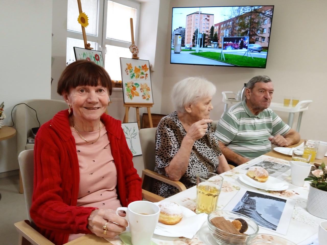 Společně si připomínali staré uličky a vyprávěli si o Frýdku-Místku, jak si ho pamatují z minulosti. Během aktivity je čekalo milé překvapení – malá, ale veselá oslava narozenin jedné z přítomných uživatelek. Oslava potěšila nejen oslavenkyni, ale i všechny ostatní. Všichni si pochutnali na čerstvém koblížku a kávě, což celé dopoledne krásně zakončilo.